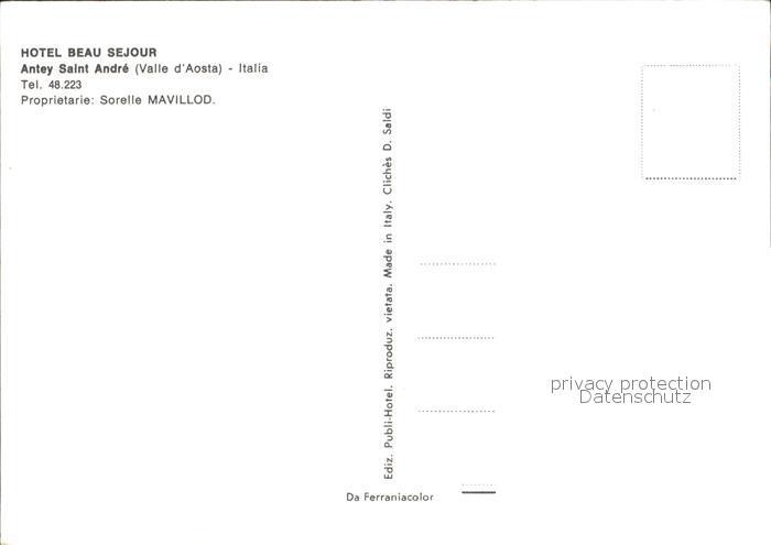 Aosta Hotel Beau Sejour antey postalisch nicht gelaufen Erhaltung siehe scans