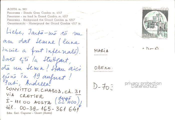 old postcard Aosta Panorama mit Gran Combin Walliser Alpen postalisch gelaufen Erhaltung siehe scans