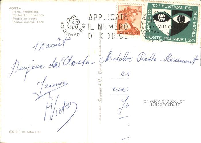 old postcard Aosta Praetorianisches Tor postalisch gelaufen Erhaltung siehe scans [KathaD75 kv015box]