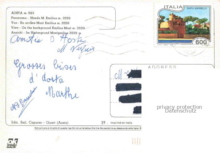 74005884 old postcard Aosta Valle d Aosta IT Panorama Sfondo M Emilius postalisch gelaufen Erhaltung siehe scans [WerneD78] KatCode: 11240