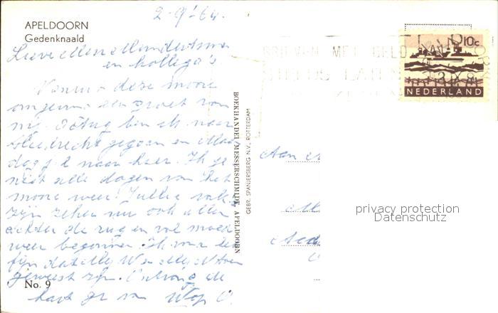 old postcard Apeldoorn Gedenknaald postalisch gelaufen Erhaltung siehe scans