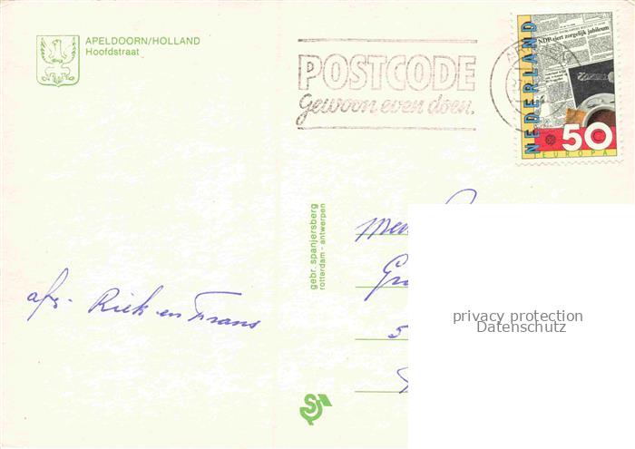 74156372 old postcard Apeldoorn Gelderland NL Hoofdstraat Miss-Etam Atlas-Garens Einkaufsstrasse Fussgaengerzone Geschaefte Passanten postalisch gelaufen Erhaltung siehe scans [Karloger] KatCode: 11370400