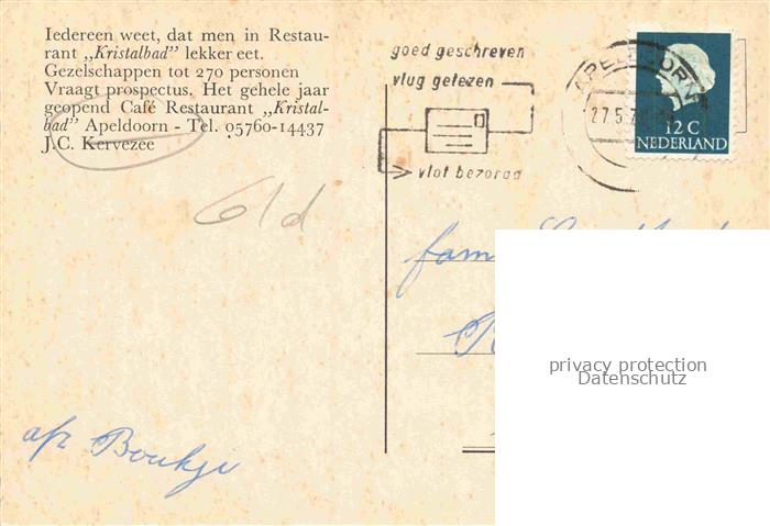 74156380 old postcard Apeldoorn Gelderland NL Kristalbad Café-Restaurant Terrasse Kiefernwald Besucher Restaurantgarten postalisch gelaufen Erhaltung siehe scans [Karloger] KatCode: 11370400