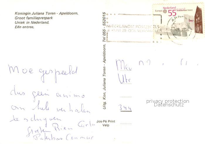 old postcard Apeldoorn Koningin Juliana Toren Groot familiepretpark Details postalisch gelaufen Erhaltung siehe scans [WerneD78]
