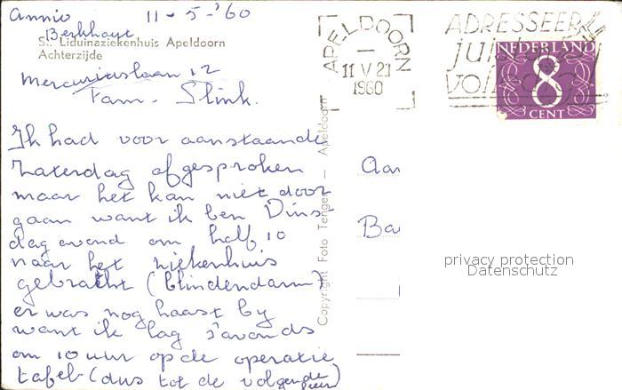 old postcard Apeldoorn St. Liduinazierkenhuis postalisch gelaufen Erhaltung siehe scans