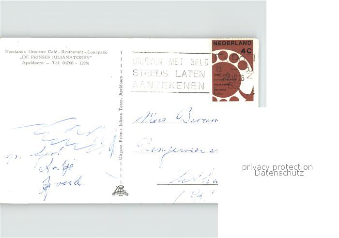 old postcard Apeldoorn Uitzichttoren Prinses Julianatoren postalisch gelaufen Erhaltung siehe scans