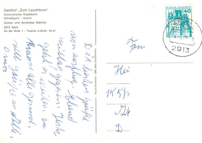 73875446 alte Postkarte Apen Ammerland Niedersachsen Gasthof Zum Leuchtturm postalisch gelaufen Erhaltung siehe scans [FriedD77] KatCode: 11110003451001