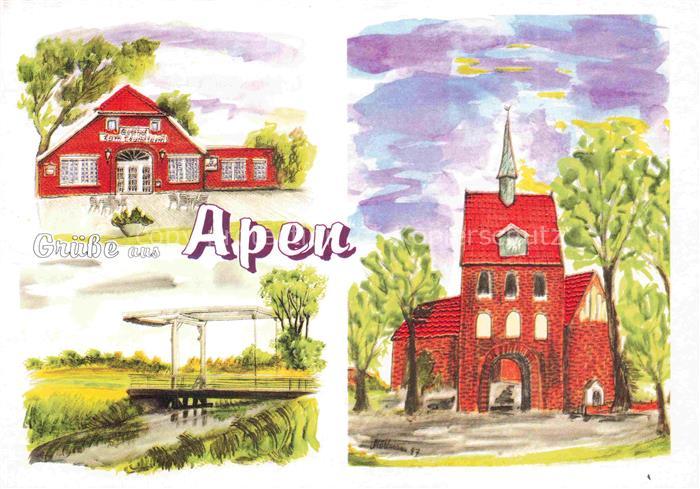 74093799 Apen Ammerland Niedersachsen Hotel Ziehbruecke Glockenturm postalisch nicht gelaufen Erhaltung siehe scans [WerneD78] KatCode: 11110003451001