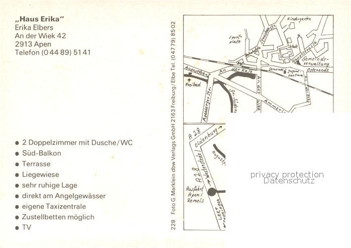 73686132 Apen Haus Erika An der Wiek Gaestezimmer postalisch nicht gelaufen Werbekarte (keine Postkarte) Erhaltung siehe scans [WerneD78] KatCode: 11110003451001