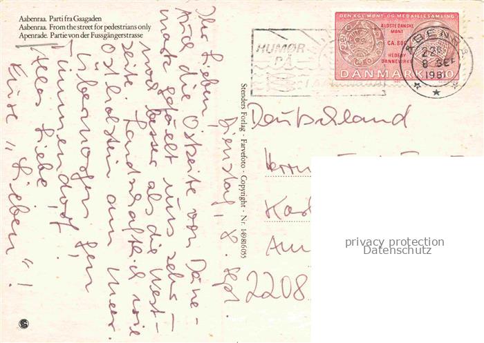 74141993 old postcard Apenrade Aabenraa DK Partie von der Fussgaengerstrasse postalisch gelaufen Erhaltung siehe scans [SanaeD93] KatCode: 11100