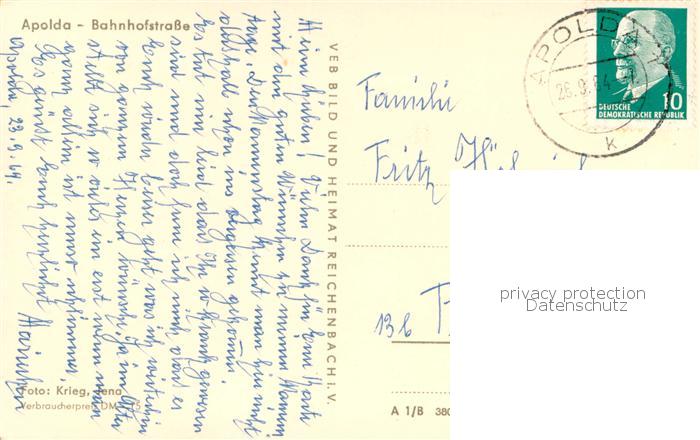 73767528 alte Postkarte Apolda Bahnhofstrasse postalisch gelaufen Erhaltung siehe scans [LiesaD40] KatCode: 11110016071001