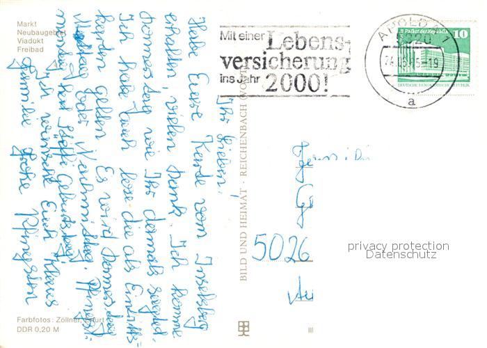 73063351 alte Postkarte Apolda Markt Viadukt Neubaugebiet Freibad postalisch gelaufen Erhaltung siehe scans [KathaD81] KatCode: 11110016071001