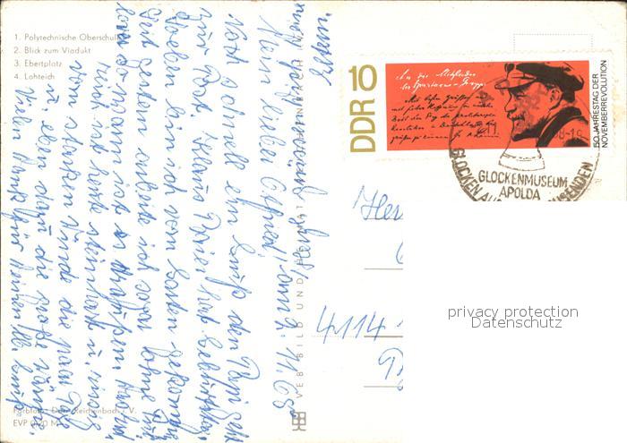 71947604 alte Postkarte Apolda Polytech Oberschule Viadukt Ebertplatz Lohteich postalisch gelaufen Erhaltung siehe scans KatCode: 11110016071001
