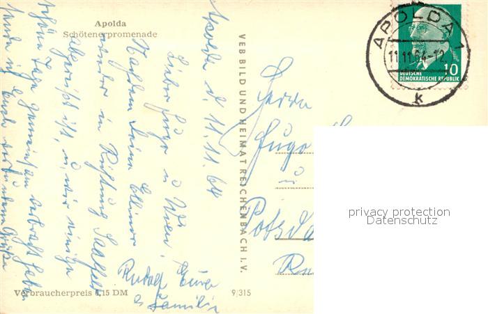 43495727 alte Postkarte Apolda Schoetenerpromenade postalisch gelaufen Erhaltung siehe scans [WerneD78] KatCode: 11110016071001