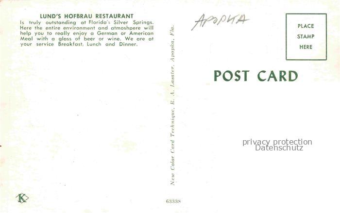 74055404 Apopka Florida USA Lunds Hofbraeu Restaurant postalisch nicht gelaufen Erhaltung siehe scans [WerneD78] KatCode: 14140110000000