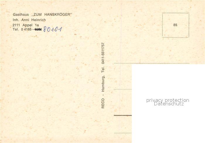 73725936 Appel Gasthaus Zum Hanskroeger Reetdach postalisch nicht gelaufen Erhaltung siehe scans [FriedD77] KatCode: 11110003353001