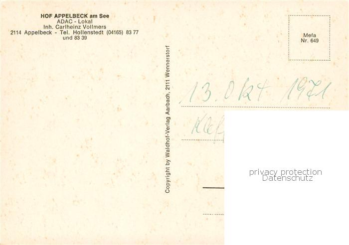 73844781 Appelbeck Hof Appelbeck am See postalisch nicht gelaufen Erhaltung siehe scans [WerneD78] KatCode: 11110003353025