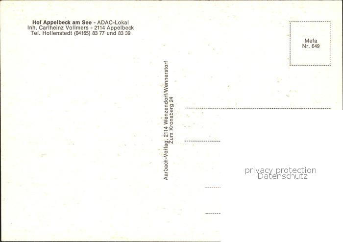 72157002 Appelbeck Hof Appelbeck am See ADAC Lokal postalisch nicht gelaufen Erhaltung siehe scans KatCode: 11110003353025