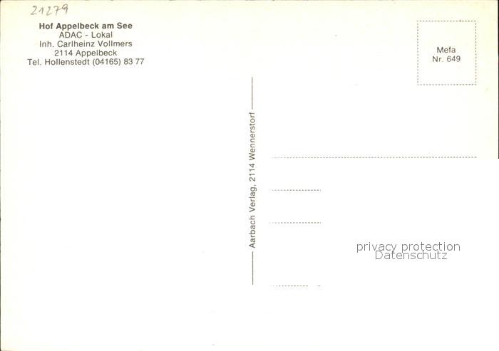 72468184 Appelbeck Hof Appelbeck am See ADAC Lokal Restaurant postalisch nicht gelaufen Erhaltung siehe scans KatCode: 11110003353025