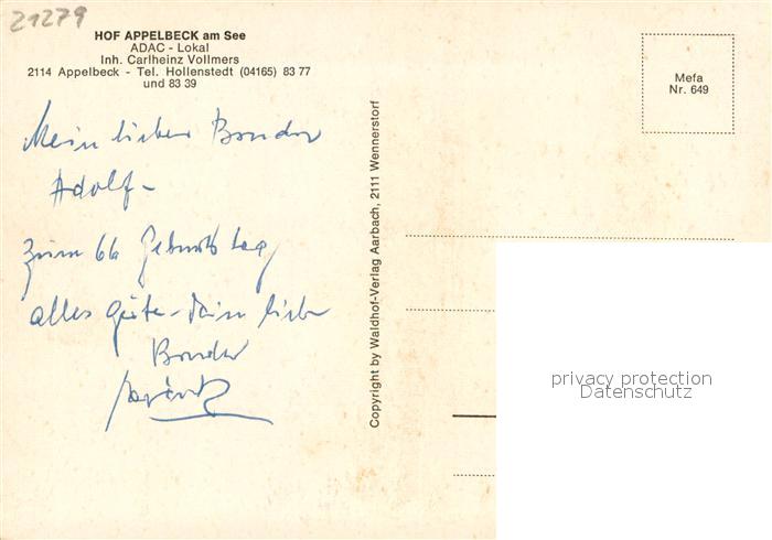 73646501 Appelbeck Hof Appelbeck am See ADAC-Lokal postalisch nicht gelaufen Erhaltung siehe scans [FriedD77] KatCode: 11110003353025