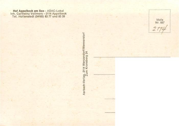 73888444 Appelbeck Hof Appelbeck am See Gaststube postalisch nicht gelaufen Erhaltung siehe scans [FriedD77] KatCode: 11110003353025