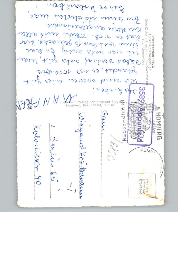 31131588 Appenfeld Privatpension Pflug postalisch nicht gelaufen KatCode: 11110006634011