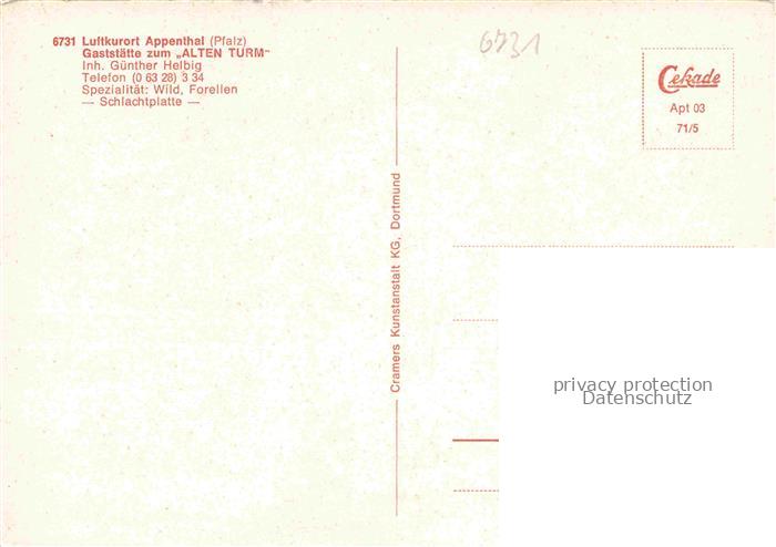 74047369 Appenthal Elmstein Bad Duerkheim Rheinland-Pfalz Gaststaette zum Alten Turm Gastraum Ortszentrum Burg Luftaufnahme postalisch nicht gelaufen Erhaltung siehe scans [FriedD77] KatCode: 11110007332014