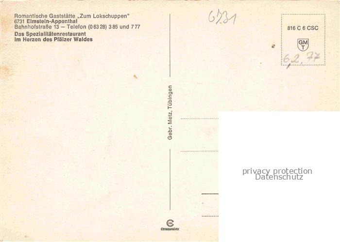 74047395 Appenthal Elmstein Bad Duerkheim Rheinland-Pfalz Gaststaette Zum Lokschuppen Gastraum postalisch nicht gelaufen Erhaltung siehe scans [FriedD77] KatCode: 11110007332014