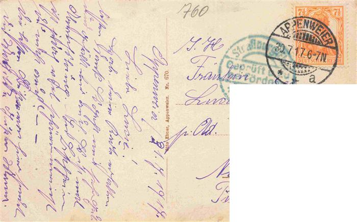 73974215 alte Postkarte Appenweier Strassenpartie Pruefstempel postalisch gelaufen Erhaltung siehe scans [FriedD77] KatCode: 11110008317005