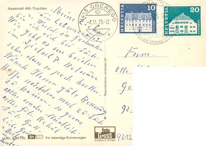 13926233 alte Postkarte Appenzell IR Appenzeller Trachten postalisch gelaufen Erhaltung siehe scans [FriedD77] KatCode: 11470030075592