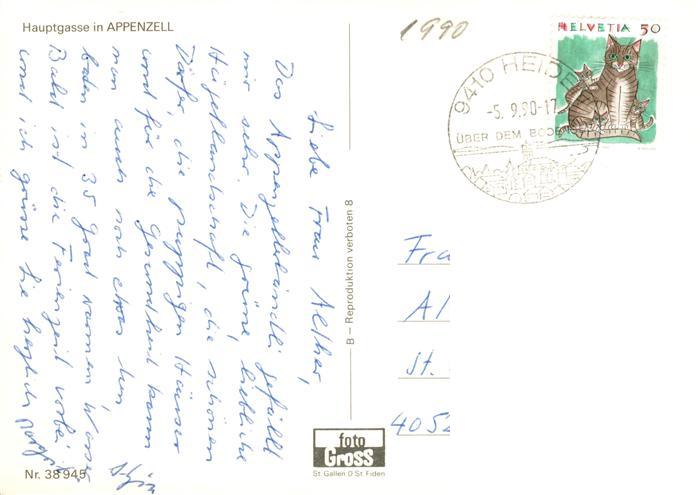 13925452 alte Postkarte Appenzell IR Hauptgasse postalisch gelaufen Erhaltung siehe scans [FriedD77] KatCode: 11470030075592