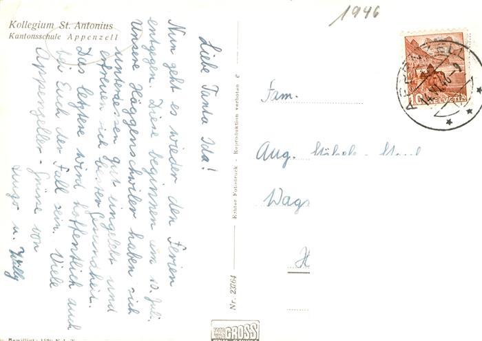 13916159 alte Postkarte Appenzell IR Kollegium St Antonius postalisch gelaufen Erhaltung siehe scans [FriedD77] KatCode: 11470030075592