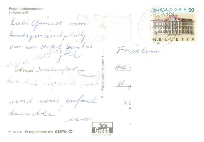 13925453 alte Postkarte Appenzell IR Postkutschenromantik Hotel Saentis postalisch gelaufen Erhaltung siehe scans [FriedD77] KatCode: 11470030075592
