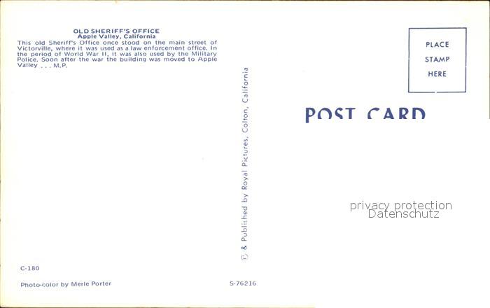 72421717 Apple Valley California Old Sheriffs Office postalisch nicht gelaufen Erhaltung siehe scans KatCode: 14140050000000