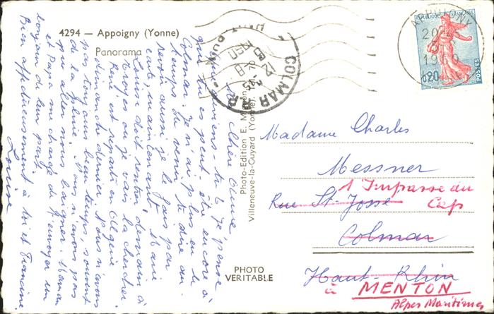 11097807 Appoigny Fliegeraufnahme postalisch gelaufen Alte Ansichtskarte Postkarte carte postale Elvi Katcode 11170089189013