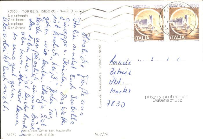 old postcard Apulien Nardo Torre San Isidoro Strand postalisch gelaufen Erhaltung siehe scans