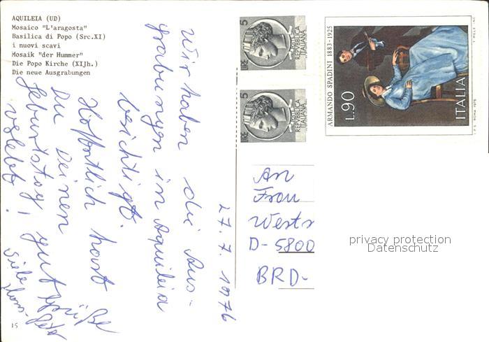 old postcard Aquileia Aquileja Mosaico L Aragosta postalisch gelaufen Erhaltung siehe scans