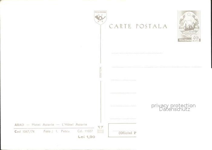 Arad Hotel Astoria postalisch nicht gelaufen Erhaltung siehe scans