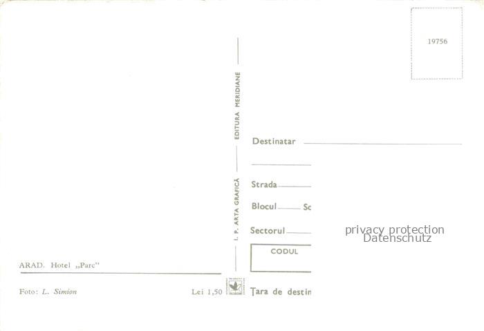 74100800 Arad RO Hotel Parc postalisch nicht gelaufen Erhaltung siehe scans [FriedD77] KatCode: 11430