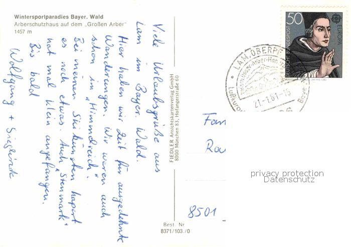 72716661 alte Postkarte Arberschutzhaus auf dem Grossen Arber postalisch gelaufen Erhaltung siehe scans [LiesaD40] KatCode: 11110009276115