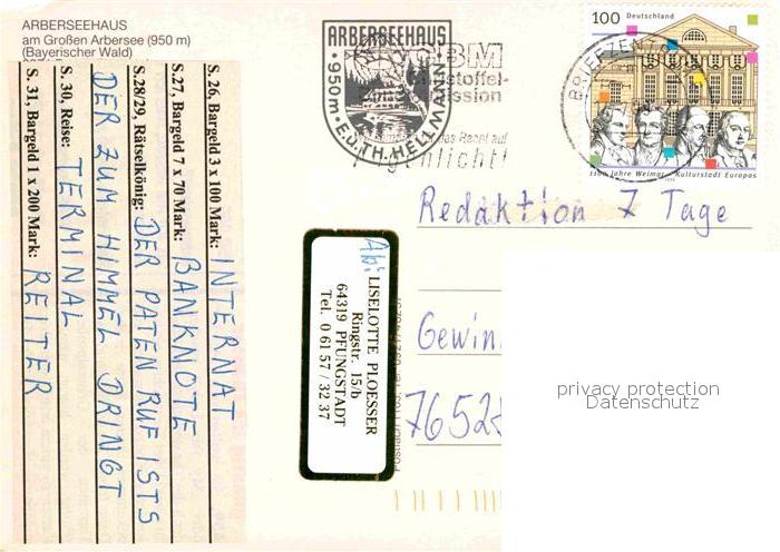 72713034 alte Postkarte Arbersee Muehle Seepartie postalisch gelaufen Erhaltung siehe scans [LiesaD40] KatCode: 11110009276115