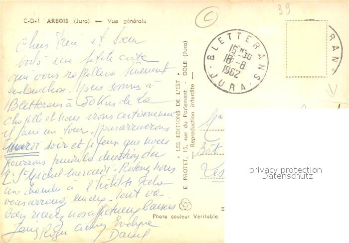 13536441 carte postale Arbois Vue Generale postalisch gelaufen Erhaltung siehe scans [FriedD77] KatCode: 11170039239013