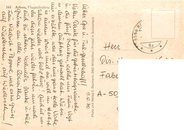 13884946 alte Postkarte Arbon TG Fliegeraufnahme postalisch gelaufen Erhaltung siehe scans [WerneD78] KatCode: 11470200600940