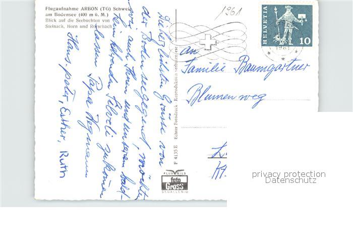 12590160 alte Postkarte Arbon TG Fliegeraufnahme mit Bodensee Steinach Horn Rorschach postalisch gelaufen Erhaltung siehe scans [LiesaD40] KatCode: 11470200600940