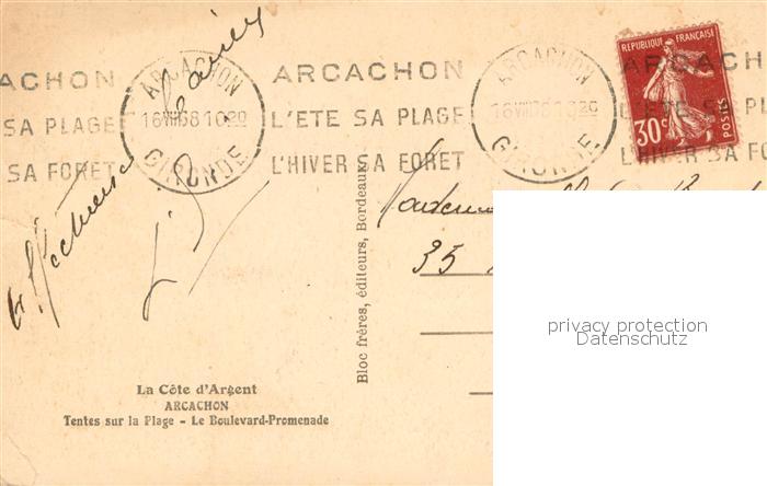 13752907 Arcachon 33 Tentes sur la plage Boulevard Promenade postalisch gelaufen Erhaltung siehe scans [FriedD77] carte postale Frie Katcode 11170033633009