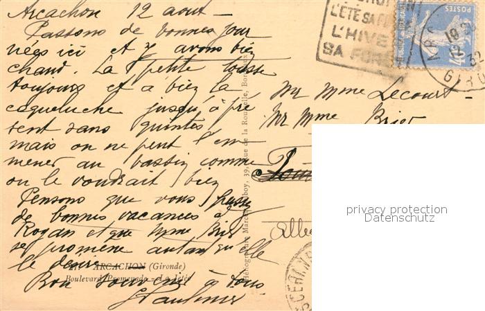 13608050 carte postale Arcachon Gironde Boulevard Promenade La Jetée postalisch gelaufen Erhaltung siehe scans [FriedD77] KatCode: 11170033633009