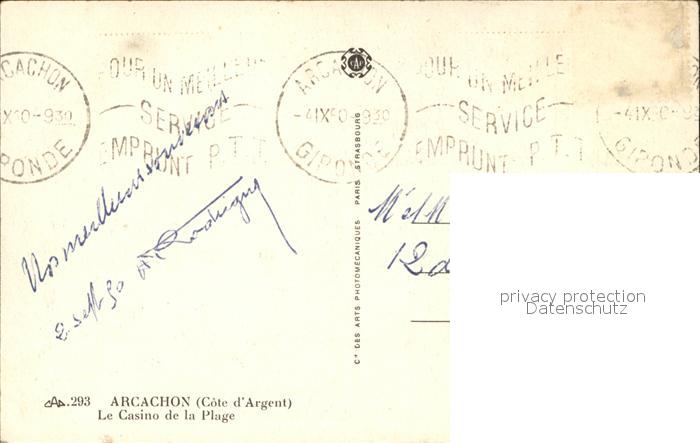 11716112 carte postale Arcachon Gironde Casino de la Plage postalisch gelaufen Erhaltung siehe scans KatCode: 11170033633009
