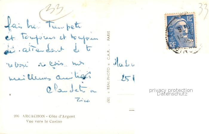 13572421 carte postale Arcachon Gironde Cote d’Argent Vue vers le Casino postalisch gelaufen Erhaltung siehe scans [WerneD78] KatCode: 11170033633009