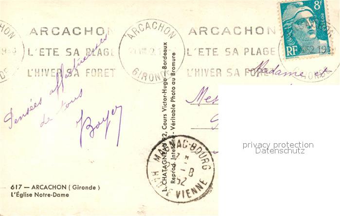 13541412 carte postale Arcachon Gironde Eglise Notre Dame postalisch gelaufen Erhaltung siehe scans [FriedD77] KatCode: 11170033633009