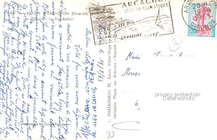 13504486 carte postale Arcachon Gironde En Regate Le Foc Ballon postalisch gelaufen Erhaltung siehe scans [WerneD78] KatCode: 11170033633009